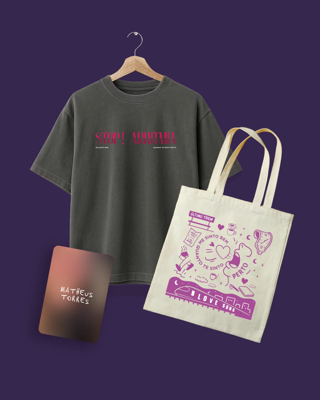 O kit é composto por: 1 Camiseta Oversized Love Song + 1 Ecobag Love Song + Brinde: 1 Photocard Autografado.